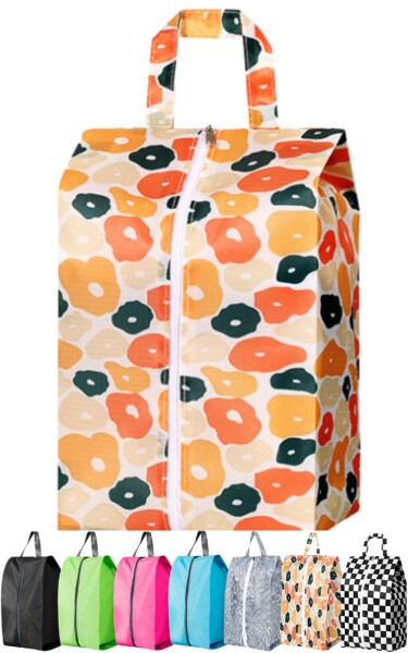 ターティス シューズバッグ 防水 超軽量 シューズケース 靴入れ袋 上履き入れ 男女兼用 スポーツ ジム 学校 部活 旅行 収納バッグ 撥水加工 カラーバリエーション豊富 (ポップフラワー,