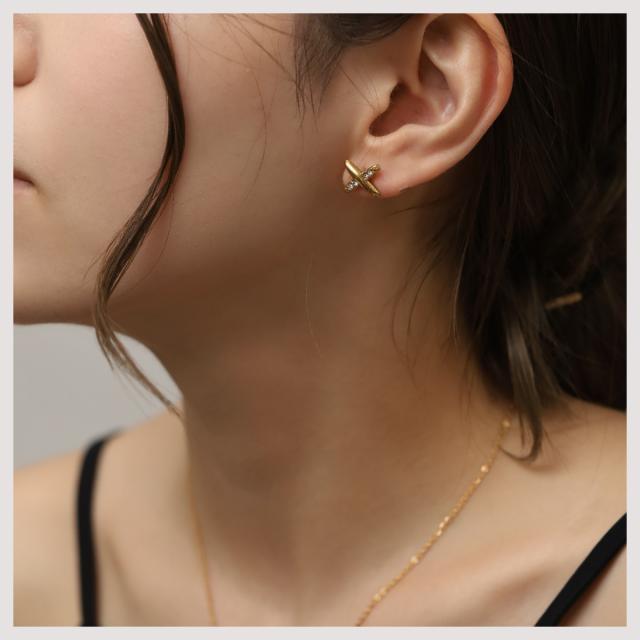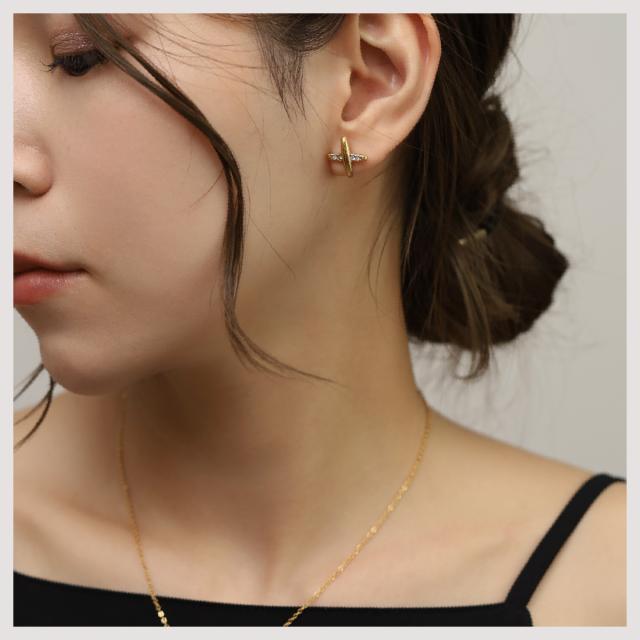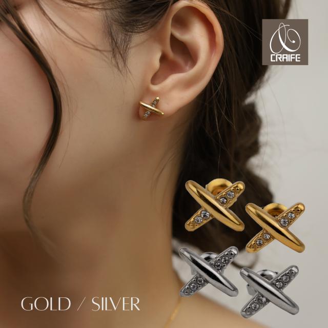 ピアス 金属アレルギー対応 サージカルステンレス 316L 18Kコーティング レディース 大人 シンプル かわいい クロス ジルコニア エレガント ジュエリー ゴールド シルバー 送料無料 プチプライス高見え CRAIFE