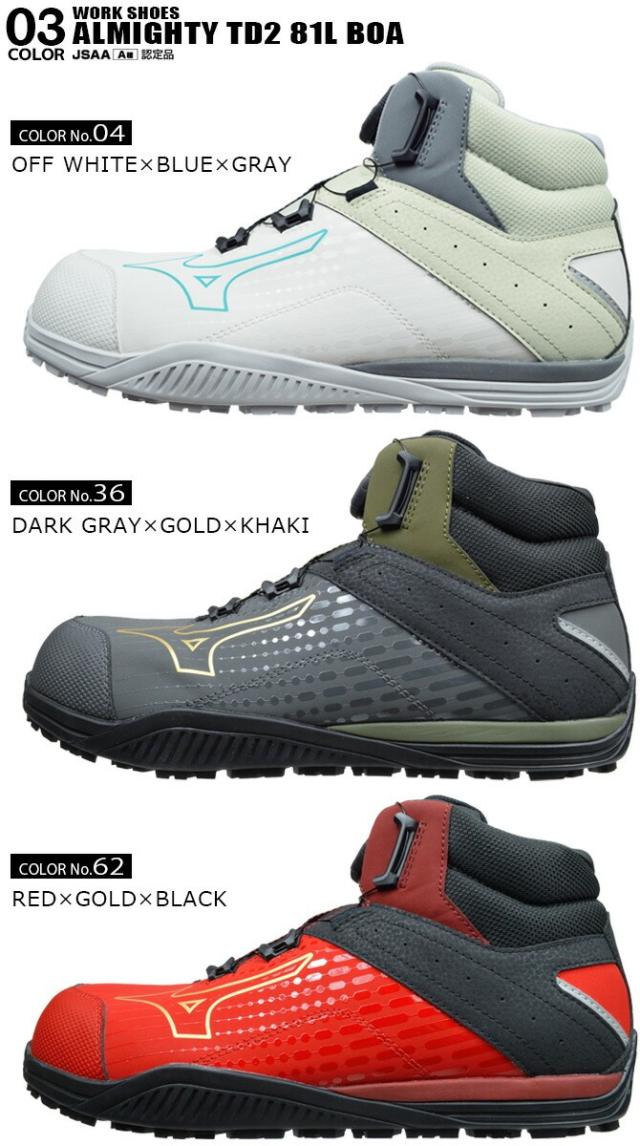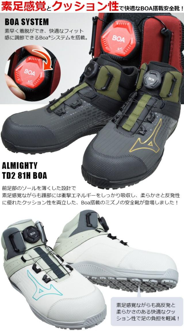 ミズノ 安全靴 スニーカー オールマイティ ALMIGHTY TDII 81H BOA F1GA2510 BOA搭載 ハイカット MIZUNO メンズ JSAA A種 耐滑 耐油 防塵 衝撃吸収