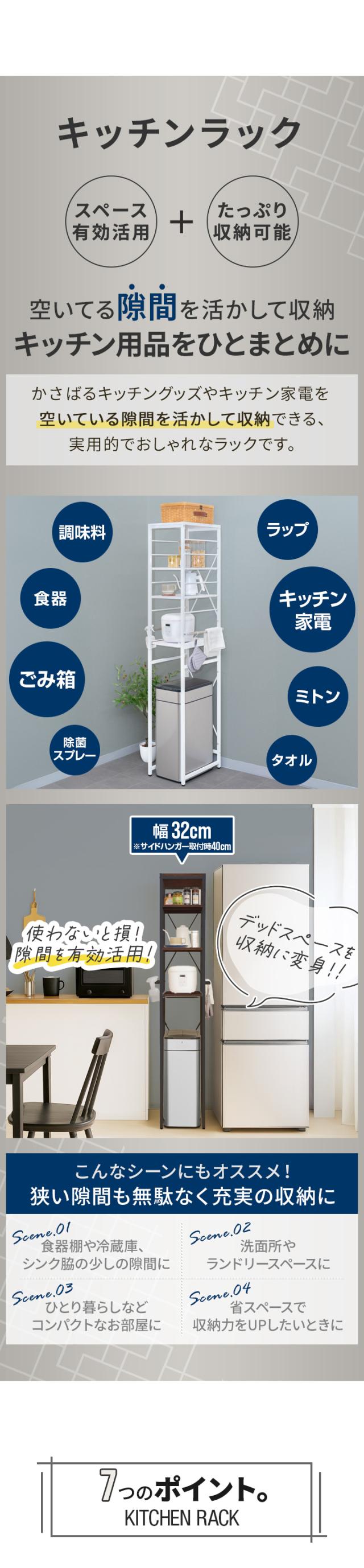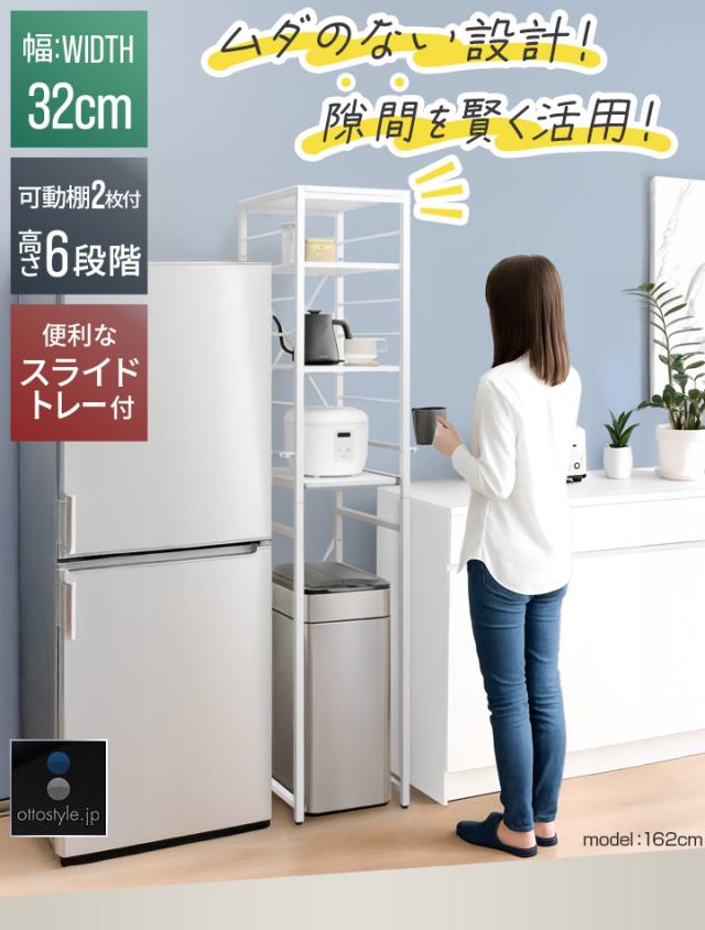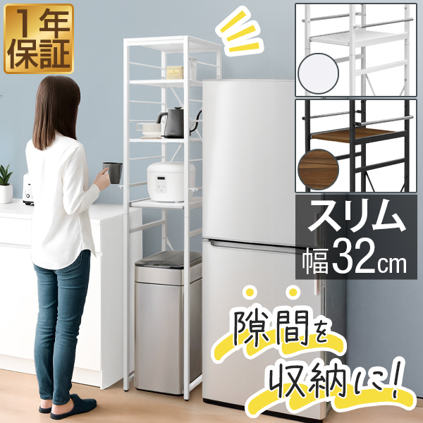 キッチンラック スリム 隙間収納 スライド棚 4段 幅32cm 高さ180cm スリムラック 家電ラック キッチン収納 ゴミ箱上 炊飯器 可動棚 収納 省スペース コンパクト ゴミ箱上ラック ゴミ箱収納 幅30 収納棚 棚 おしゃれ 一人暮らし 1年保証 送料無料