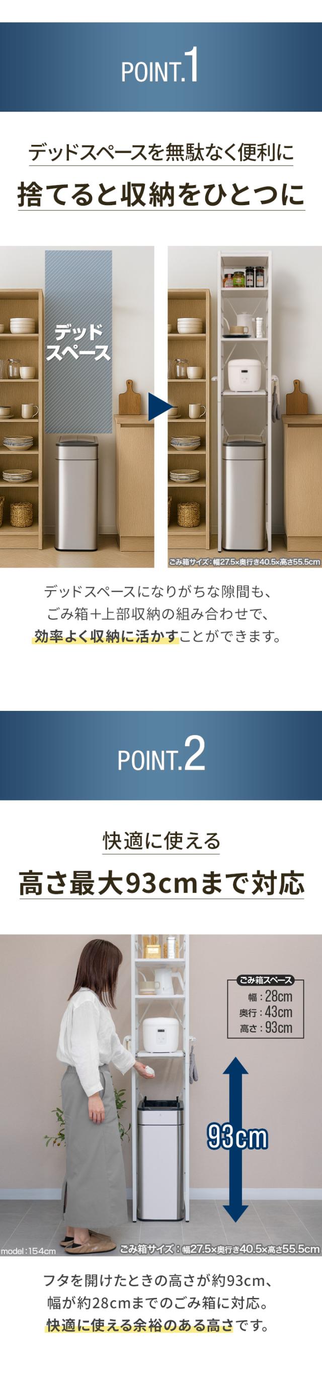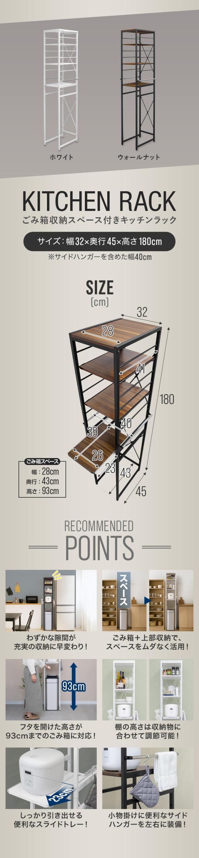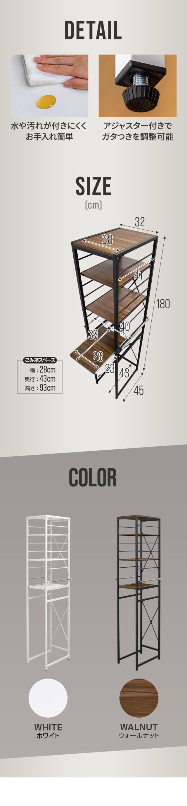 | サイズ: 本体:(約)幅32cm(幅40cm※サイドハンガー含む)×奥行45cm×高さ180cm ごみ箱スペース:(約)幅28cm×奥行43cm×高さ93cm |