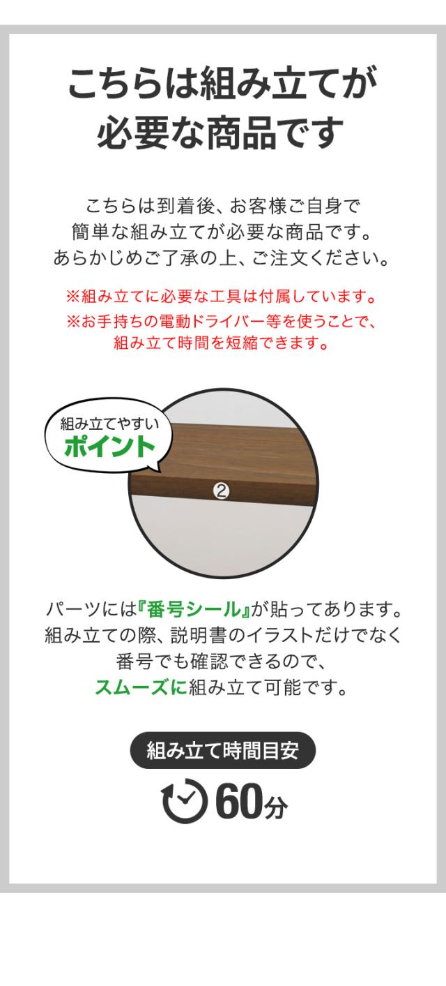 | 特記事項: ※こちらの商品はお客様組み立てとなります。(工具は付属しています) ※組み立ては2人以上で行ってください。 ※組み立ての際は、電動ドライバーの使用を推奨します。お手持ちの電動ドライバーを使うことで、組み立て時間を短縮することができます。 |