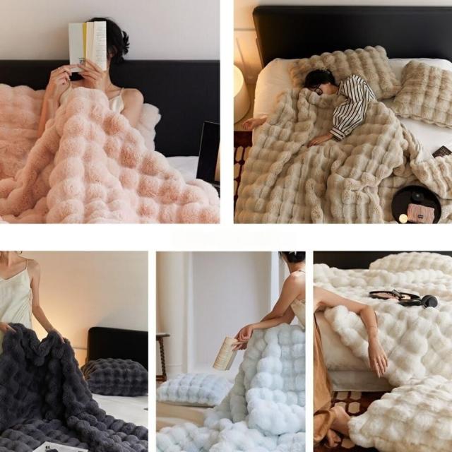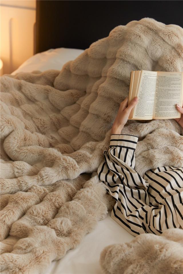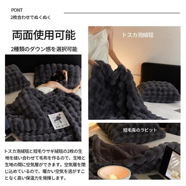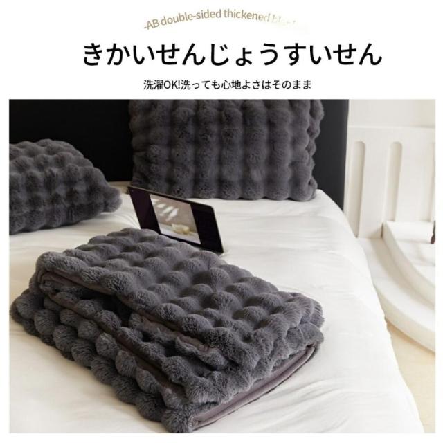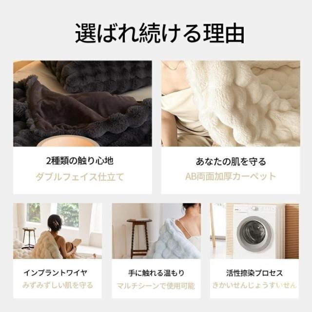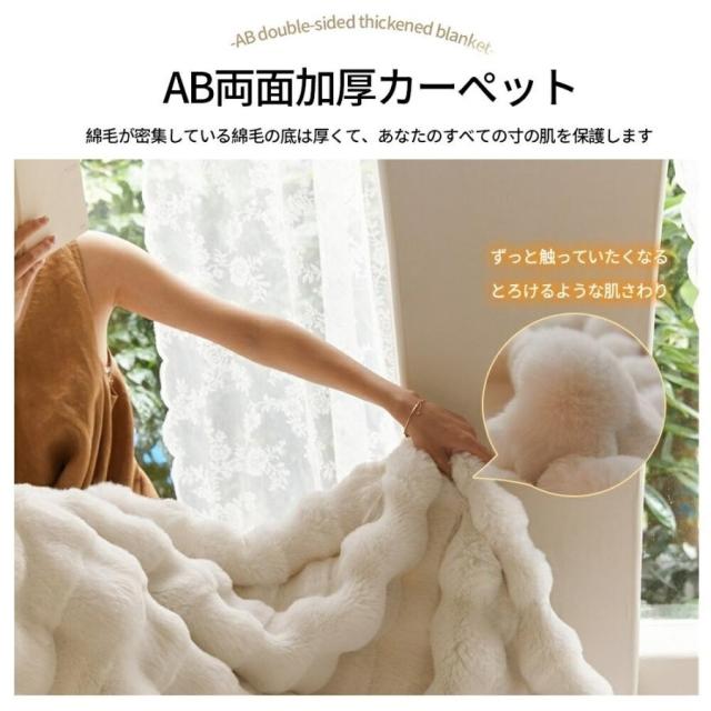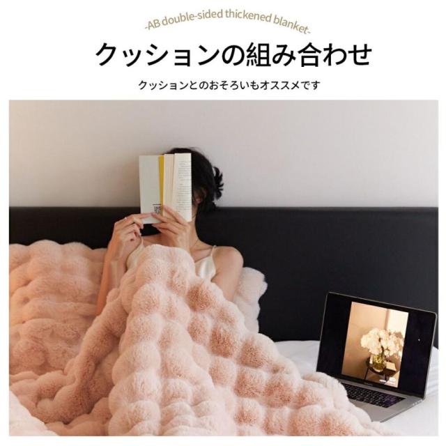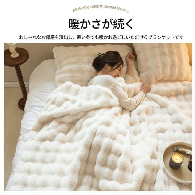 【ふっくら素材と温かい空気の層があなたを包む】贅沢なふわふわファータッチは、美しいだけでなく 肌触りも抜群です。 寒い冬にも安心のボリューム感があります、暖かさも厚みも、程よいバランスの毛布です。