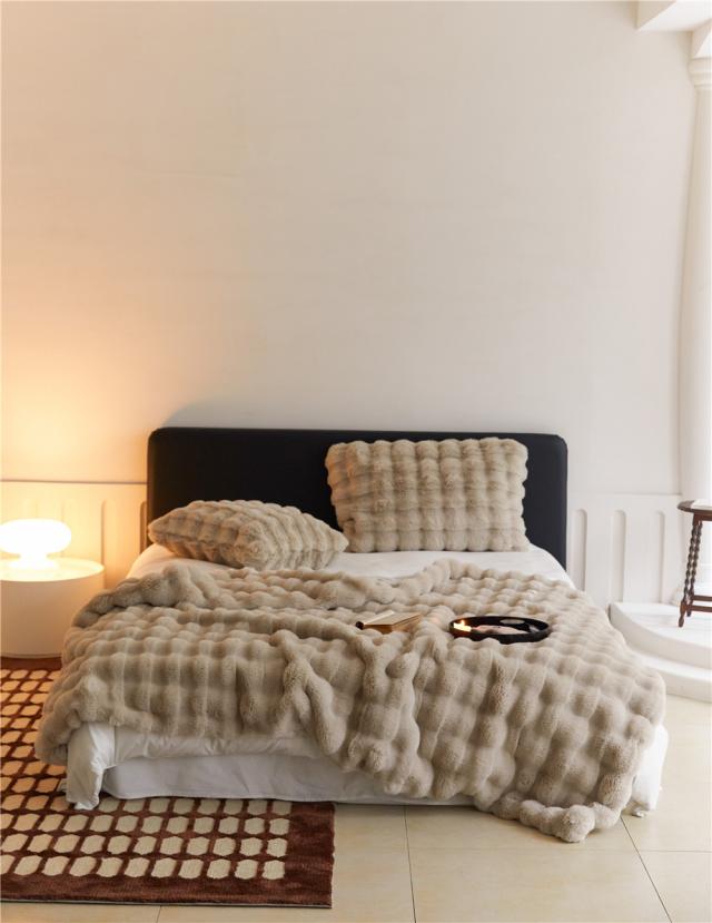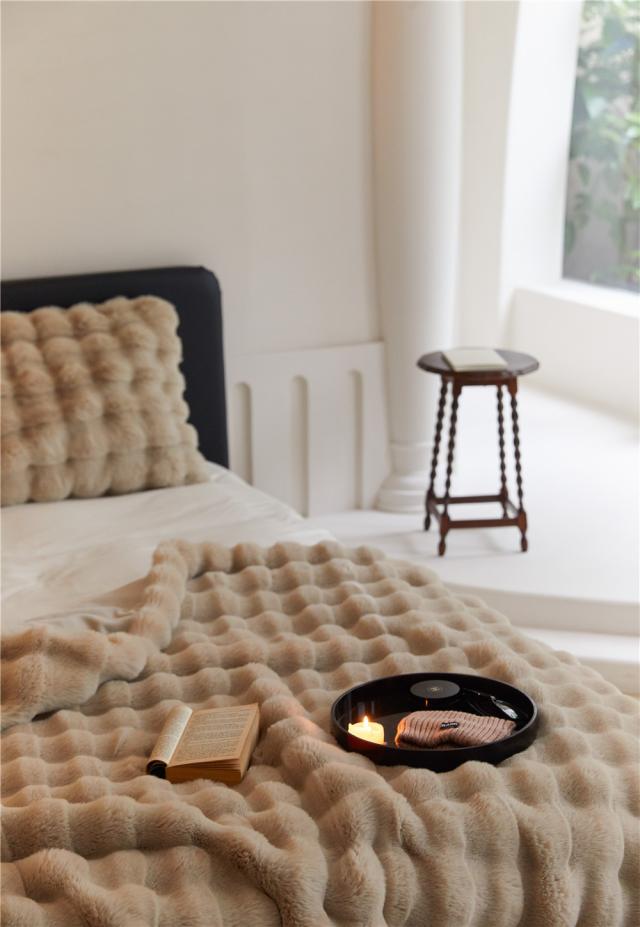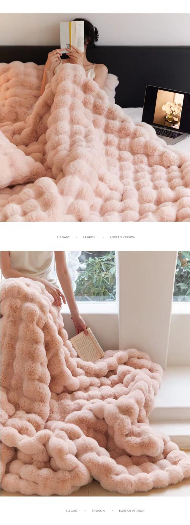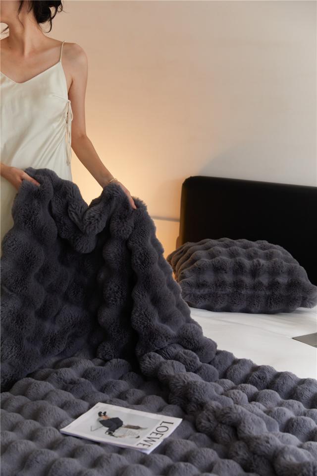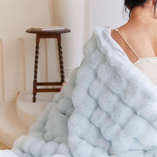 【ふっくら素材と温かい空気の層があなたを包む】贅沢なふわふわファータッチは、美しいだけでなく 肌触りも抜群です。 寒い冬にも安心のボリューム感があります、暖かさも厚みも、程よいバランスの毛布です。
