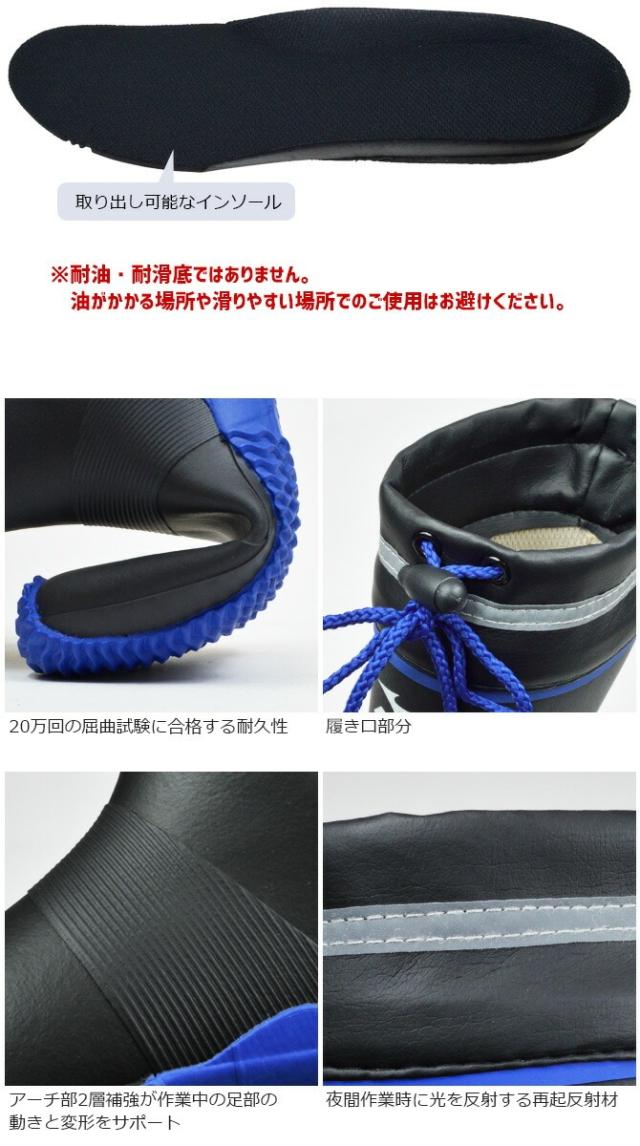 スポーツシューズの型を長靴に採用することでフィット感を向上させ、アーチ部2層補強で作業中の足部の動き、変形をしっかりホールドします。