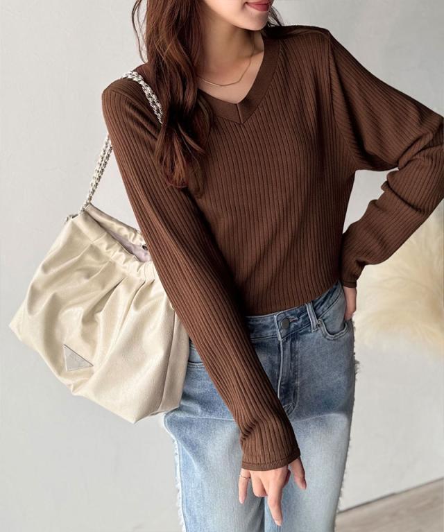 クラシカルエルフ冬新作 トップス ニット レディース 着映え V ネック シンプル 針抜き リブニット 長袖 軽量 ストレスフリー インナー レイヤードコーデ 大きいサイズ 2025aw ce1050335