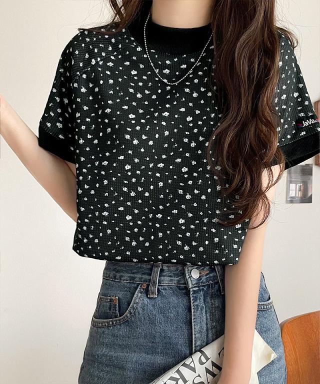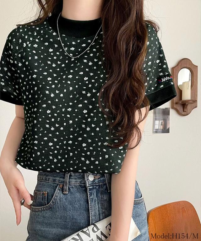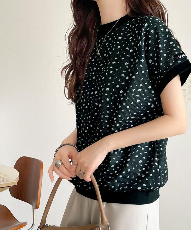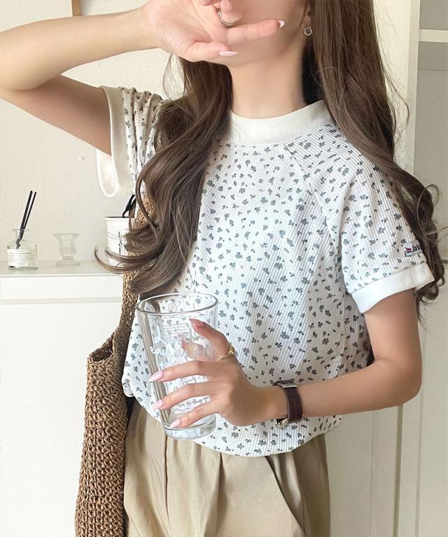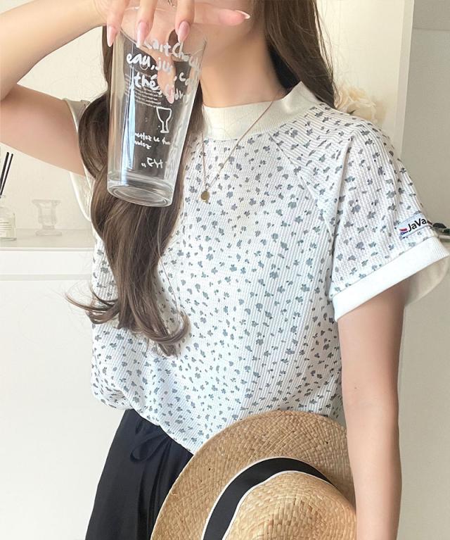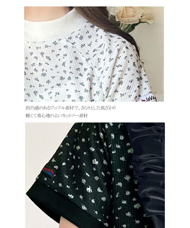 クラシカルエルフ冬新作 JaVaジャバコラボ トップス Tシャツ レディース こなれ ガーリー 小花柄 ワッフル 素材 ラグラン フレンチ 袖 カットソー 半袖 大きいサイズ 2025aw jv1010500