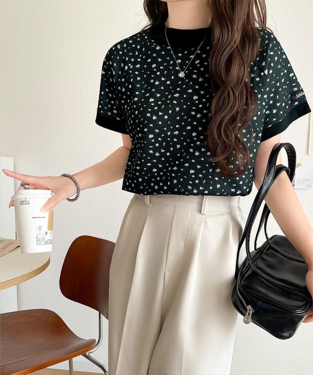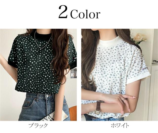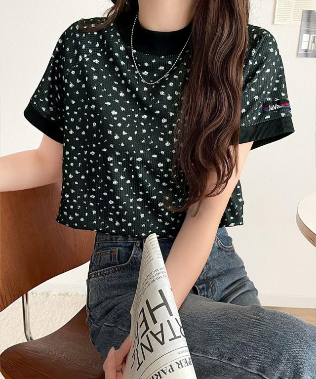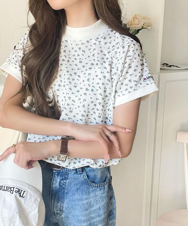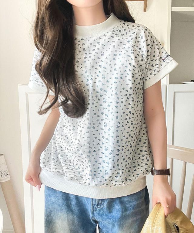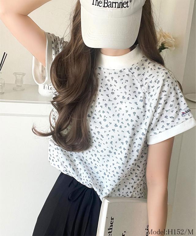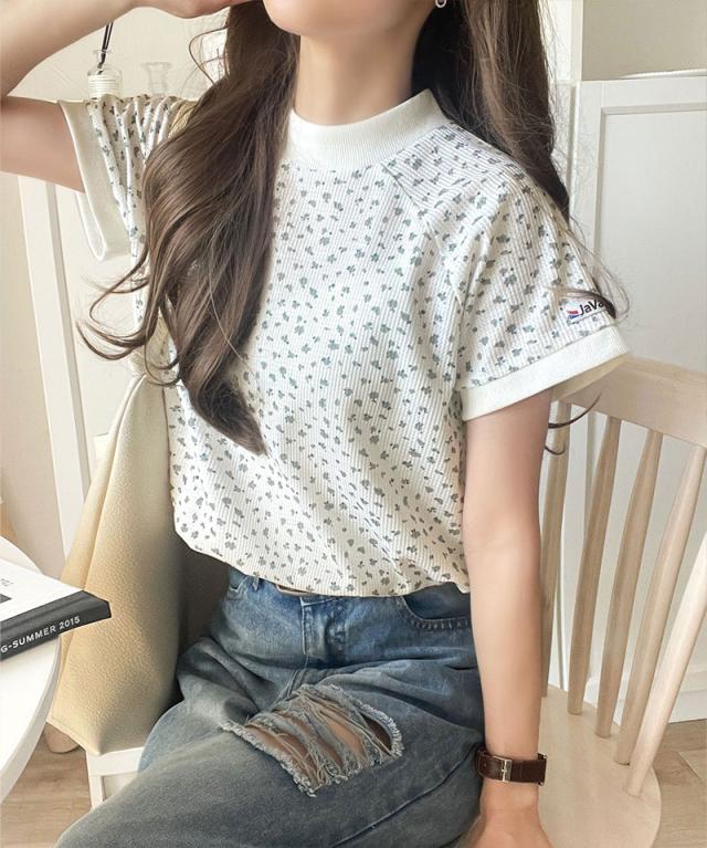 クラシカルエルフ冬新作 JaVaジャバコラボ トップス Tシャツ レディース こなれ ガーリー 小花柄 ワッフル 素材 ラグラン フレンチ 袖 カットソー 半袖 大きいサイズ 2025aw jv1010500