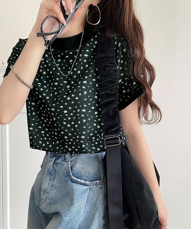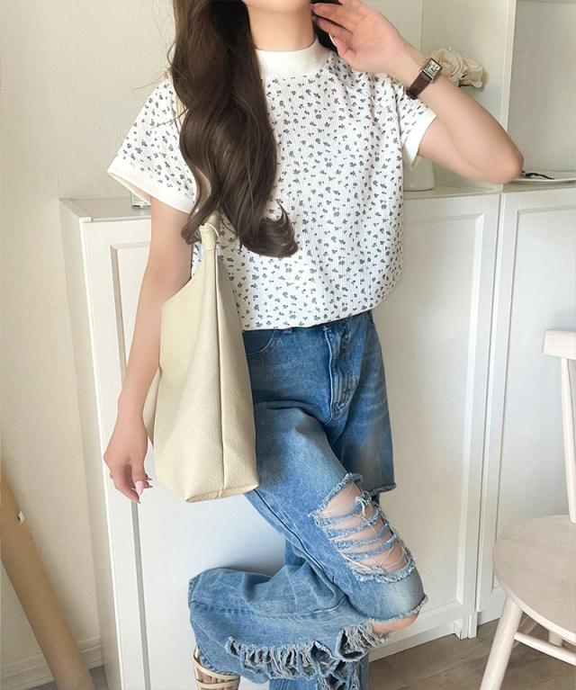 さりげない小花柄が、甘すぎず大人可愛い印象に♪