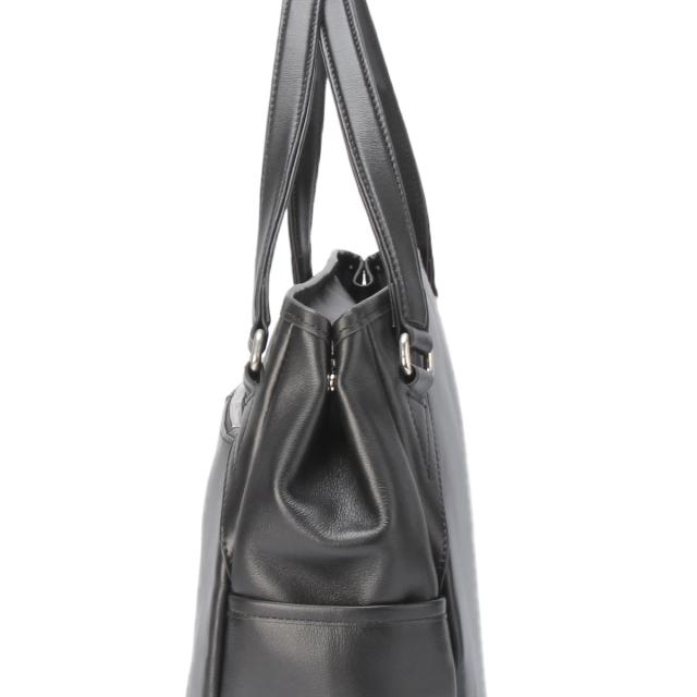 | 革本来のツヤ感やしなやかなタッチを活かしたソフトな牛革を使用した、上質感漂うカジュアルトートバッグ。シンプルで無駄のないデザインはオンオフ問わず活躍し、スタイルに品を添えてくれます。肩掛けしやすい長めの持ち手は盛りの効いた設計でクッション入り。重い荷物を入れても肩や手にかかる負担を軽減し、快適に持ち歩けます。 機能性も充実 両サイドのホックでマチを拡張でき、荷物量やシーンに応じてバッグのシルエットを変化可能。底面には底鋲を配置し、自立性を高めるとともに汚れや擦り切れを防止します。正面にはすぐに取り出したいアイテムに便利なファスナーポケットを備え、両サイドにはペットボトルや折りたたみ傘を収納しやすいオープンポケットを装備。 収納力抜群の大容量 一般的なB4サイズに対応しており、書類やファイルの持ち運びに最適。さらにメインルームにはノートPCを安心して収納できるパッド入りポケットを装備し、ビジネスシーンにも対応します。小物整理に役立つ複数のポケットもあり、日常の使いやすさを追求。タウンユースから旅行、ビジネスまで幅広いシーンで活躍します。 ギフトにもおすすめ 上質な牛革の風合いとシンプルなデザインは、年代を問わず長く愛用できる逸品。誕生日や就職祝い、父の日などの贈り物にも最適です。 |