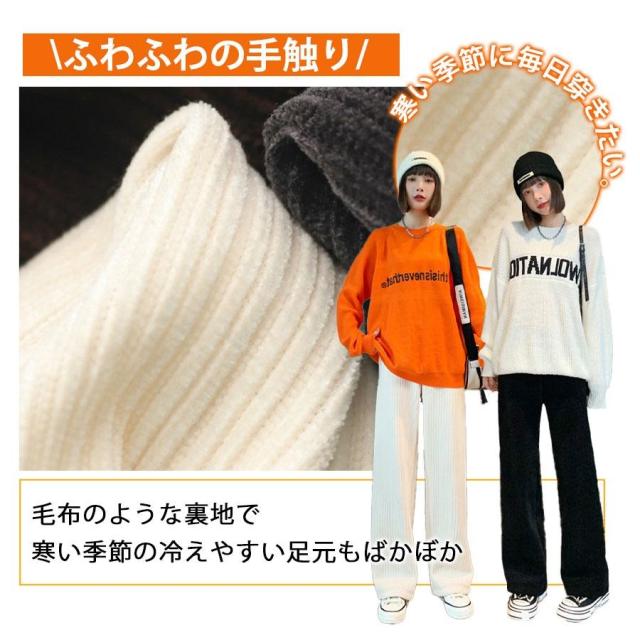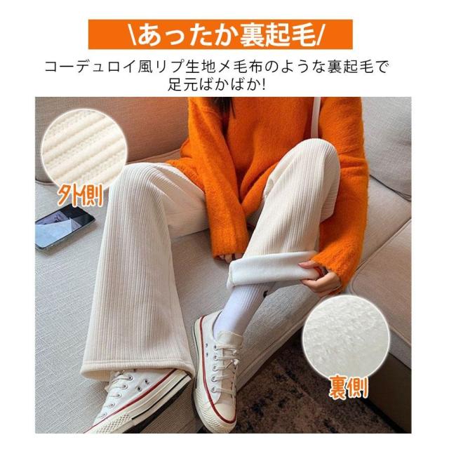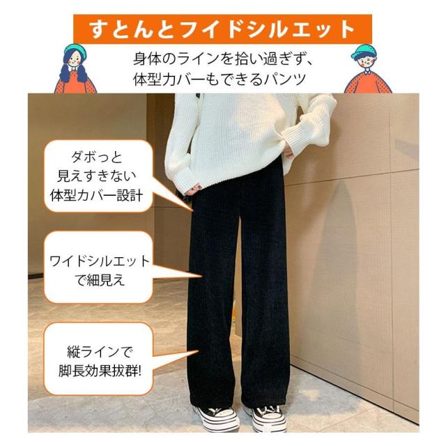 ワイドパンツ ロング丈 コーデュロイ あったかい お出かけ 裏起毛パンツ 裏ボア 体型カバー 可愛い 無地 楽ちん 秋冬 暖かい ゆったり パンツ