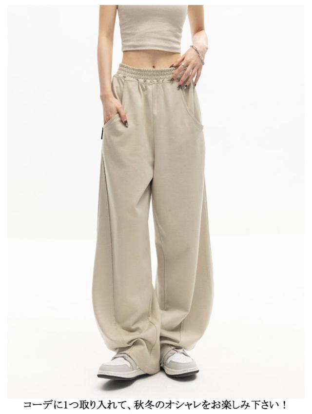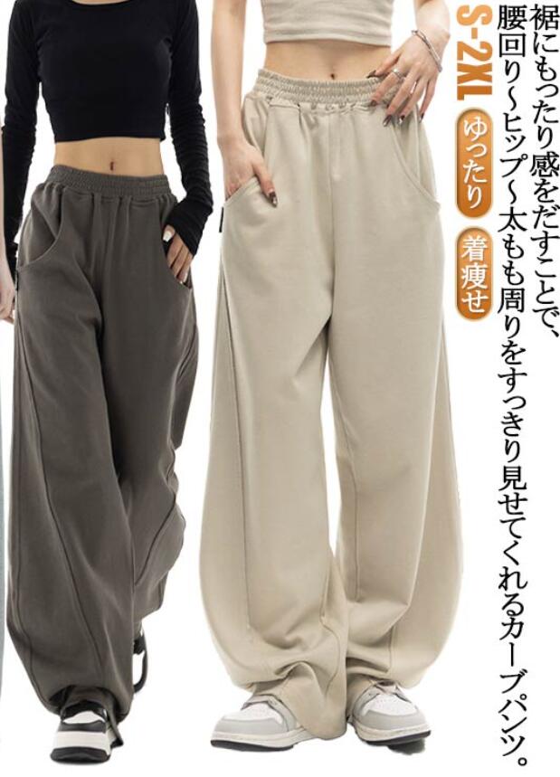 大人 カーブパンツ ゆったり 下半身 スウェットパンツ ワイドパンツ ウエストゴム ジャージ 体型カバー スウェット レディース スウェットパンツ センターシーム コクーンパンツ ワイドパンツ 着痩せ 脚長効果 美脚ライン 春 秋 冬 パネルラインカーブパンツ