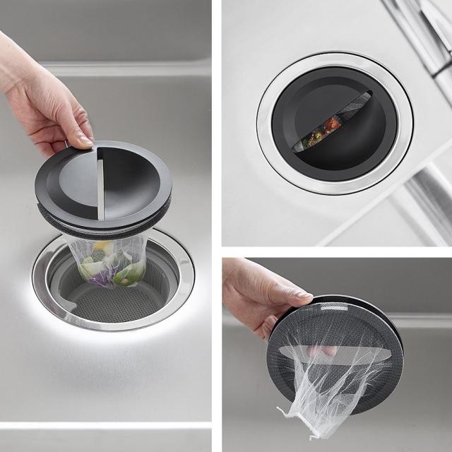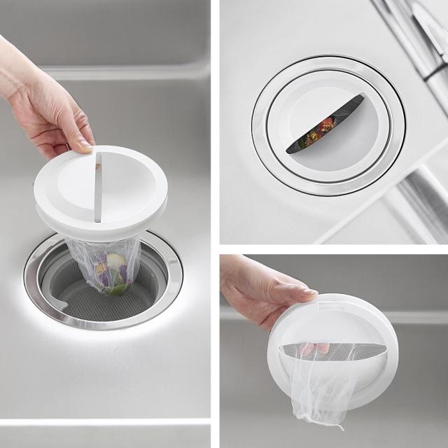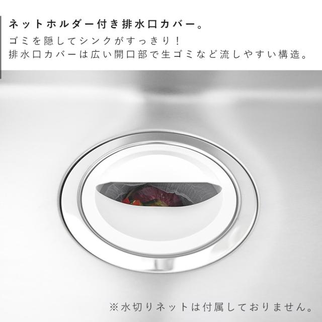 ゴミを隠して、シンクがすっきり!水切りネットホルダー付きの排水口カバー。