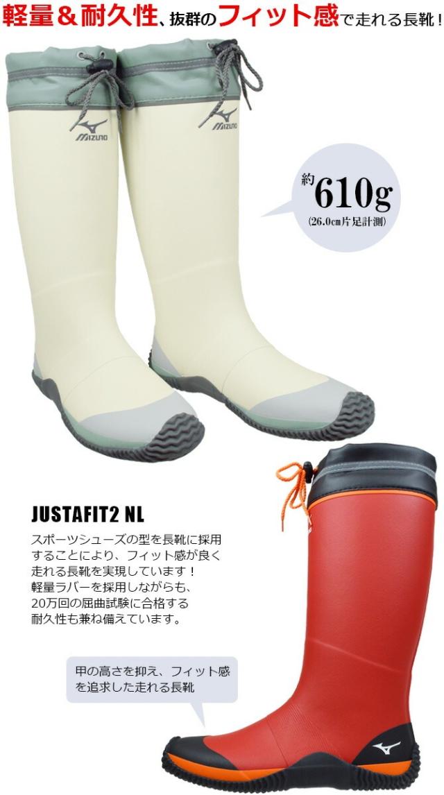ミズノの走れる長靴「ジャスタフィットII NL」です。
