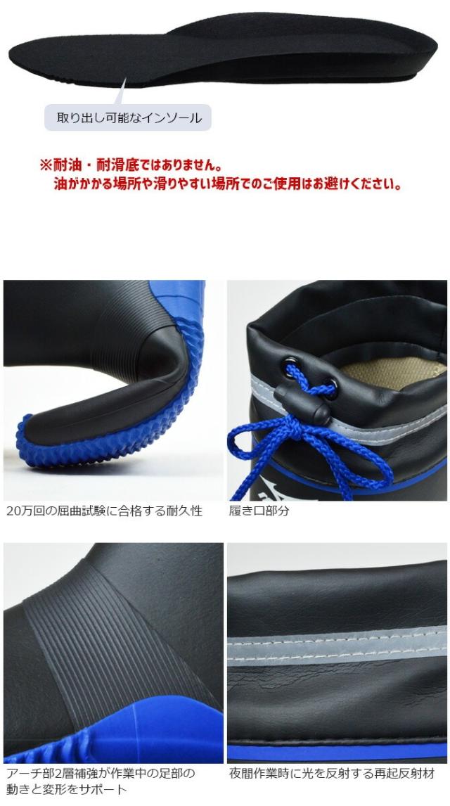 スポーツシューズの型を長靴に採用することでフィット感を向上させ、アーチ部2層補強で作業中の足部の動き、変形をしっかりホールドします。