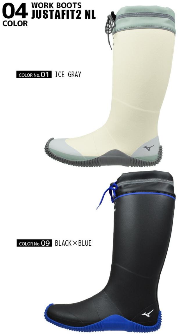 ミズノ 長靴 ワークブーツ ジャスタフィットII NL 先芯なし F1GG2500 ロングタイプ MIZUNO JASTAFITII メンズ レディース 防水 ラバーブーツ レインブーツ 作業靴