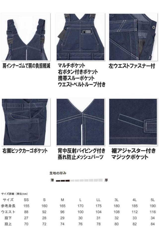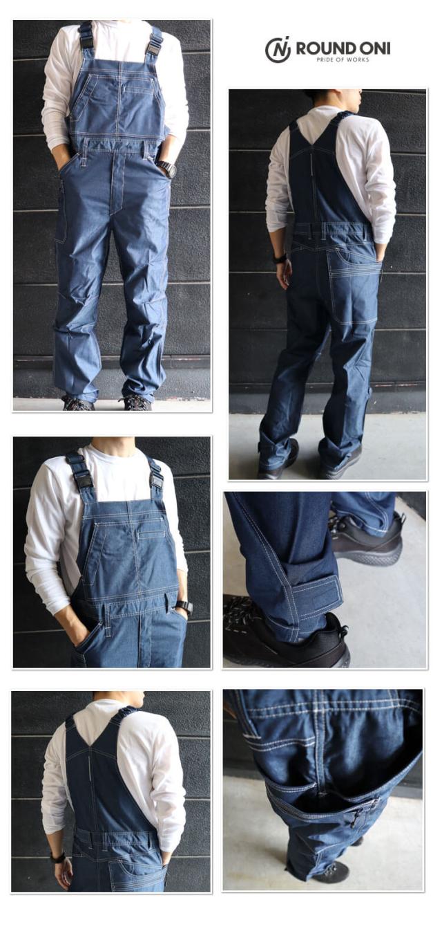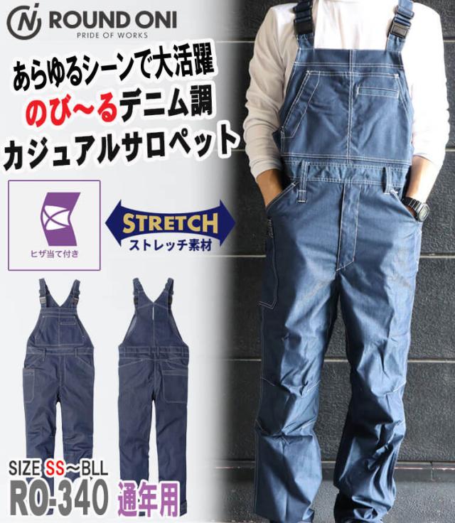 デニム調ストレッチサロペット オーバーオール RO-340 サイズSS-3L ROUND ONI 通年 丸鬼商店 2025年春夏新作