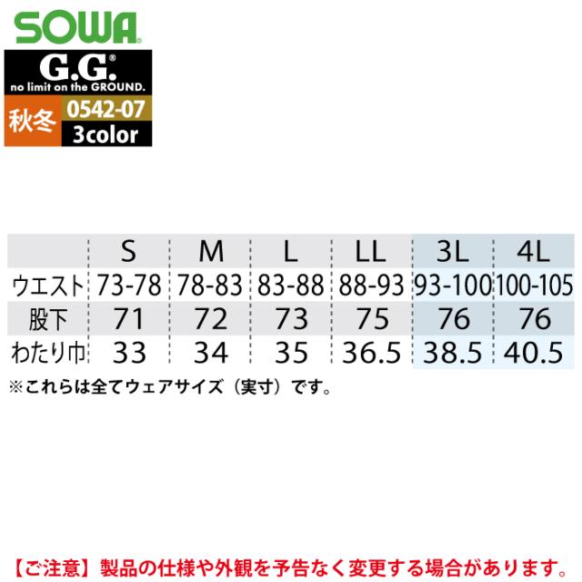 桑和 SOWA 作業服 0542-07 ジョガーパンツ S-LL 秋冬 作業着 ソーワ ワークウェア