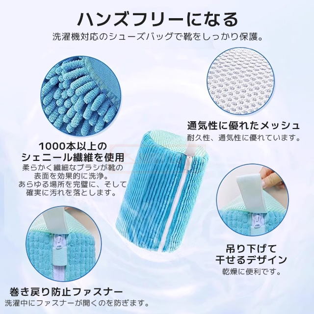 | 【型崩れ防止】 | ◆靴用洗濯ネットの内部は、1000本以上の毛羽繊維を使用し、ハンドブラシを模した毛羽柱を形成しており、通気性が高く、衛生的で、安全で清潔です。 |