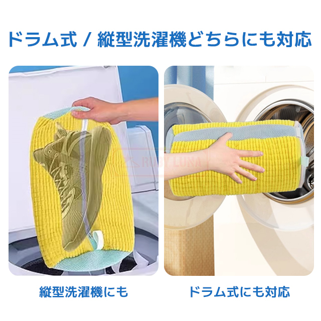 | 【靴の損傷を防ぐ】 | ◆靴は洗濯ネット中にいれて、靴が擦れず、靴の型崩れや損傷を防ぎ、靴の変色や汚れの移動を防ぎます。 ◆洗濯機の回転時の傷防止。 |