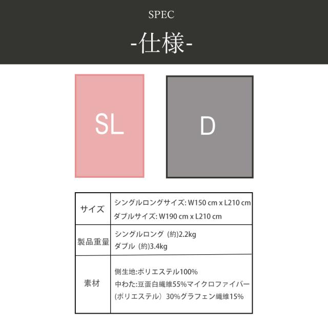 側生地:ポリエステル100% 中わた:豆蛋白繊維55% マイクロファイバー(ポリエステル) 30% グラフェン繊維15% お手入れ