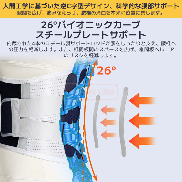 | 【男女兼用の腰サポーター】 | ◆腰椎の安定とサポートを目的に設計された腰用ベルト ◆男性にも女性にもフィットするユニセックス仕様 |