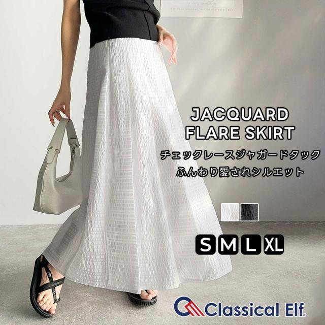 クラシカルエルフ 冬新作 classical elf ボトムス スカート レディース ふんわり 愛され シルエット チェック レース サッカー素材 ジャガード フロント タック フレア SK ロング丈 大きいサイズ 秋 冬 2025aw ce0940231