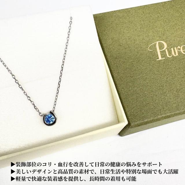 馬蹄 ネックレス 磁気ネックレス 女性 ホースシュー 金属アレルギー対応 シルバー ブルー 50代 40代 30代 ギフト