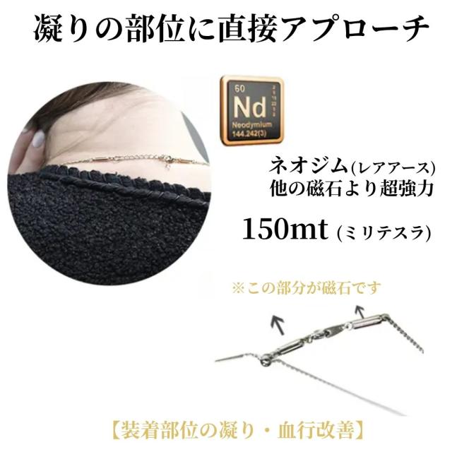 このネックレスは自然(磁力)の力を活用して凝り・血行の改善を促し、健康的な生活をサポートします。