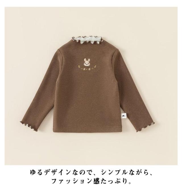| 寒い時期に何枚あっても困らない裏起毛Tシャツ。 ゆるデザインなので、シンプルながら、ファッション感たっぷり。 フリルネックで抜け感を演出してくれる子ども長袖Tシャツ。 レギンス、スキニーパンツ、ワイドパンツ、スカートなどシンプルなボトムスとあわせるだけでオシャレの万能アイテム。 寒い季節の通園・通学もあたたかい♪ | |