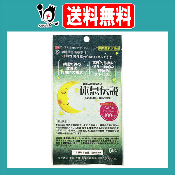 【機能性表示食品】休息伝説 6包入【沖縄長生薬草本社】GABA100mg配合サプリメント 睡眠の質改善に 起床時の眠気 事務的作業に伴う一時的な精神ストレスを緩和 青パパイヤ由来GABA