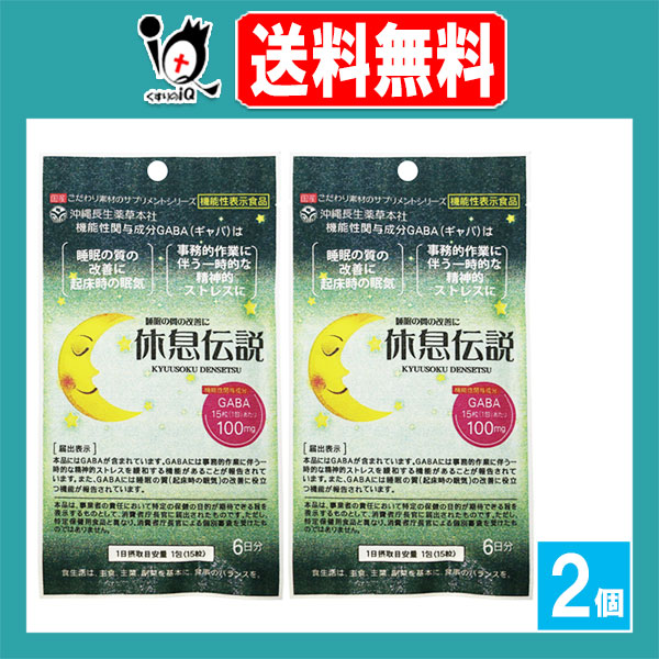 【機能性表示食品】休息伝説 6包入×2個セット【沖縄長生薬草本社】GABA100mg配合サプリメント 睡眠の質改善に 起床時の眠気 事務的作業に伴う一時的な精神ストレスを緩和 青パパイヤ由来GABA サプリメント サプリ