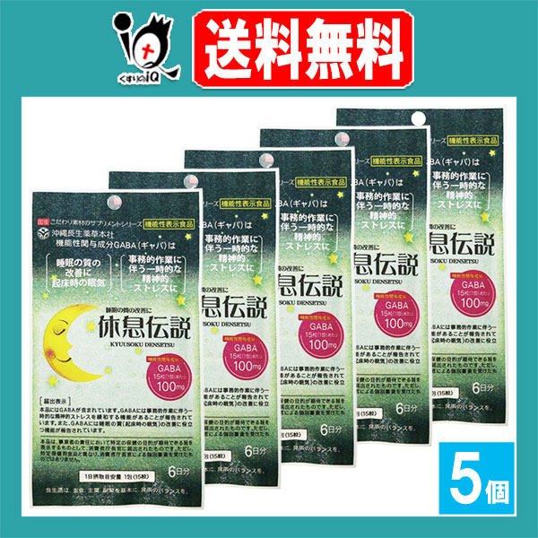 【機能性表示食品】休息伝説 6包入×5個セット【沖縄長生薬草本社】GABA100mg配合サプリメント 睡眠の質改善に 起床時の眠気 事務的作業に伴う一時的な精神ストレスを緩和 青パパイヤ由来GABA サプリメント サプリ