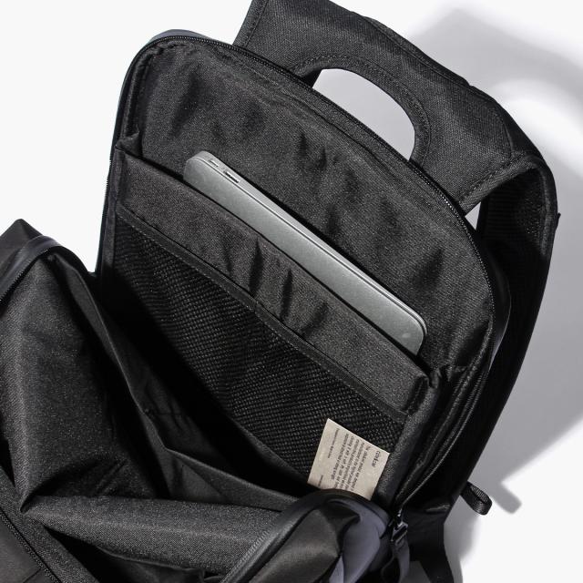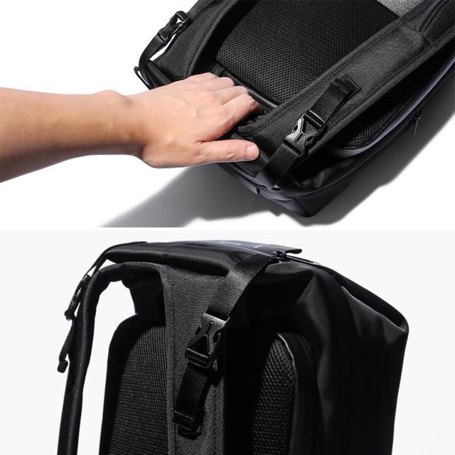 | シンメトリーですっきりとしたシルエットがお好みの方にぴったりのコンパクトなデイパック、SARU Sleekは、ノートパソコン、スケッチブック、書類などを持ち運ぶのに、普段使いに最適です。 このSARUには、広々とした外部ポケットが3つ付いています。シェル上部のストラップの間に1つ、メインコンパートメント下部の両サイドに1つずつです。上部の2つのバックルを開けると、最大16インチのノートパソコンが収まるパッド入りのデバイスポケットを備えたメインコンパートメントが現れます。この独自の構造が、ノートパソコンを盗難から守ってくれるでしょう。 |