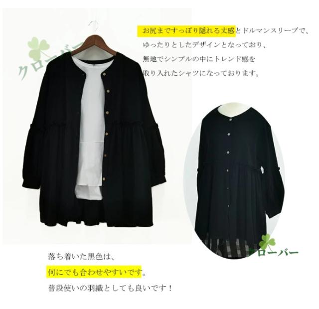 ブラウス シャツ レディース トップス ロング チュニック 二の腕カバー 半袖 無地 きれいめ レイヤード ゆったり 大きいサイズ 体型カバー お尻が隠れる