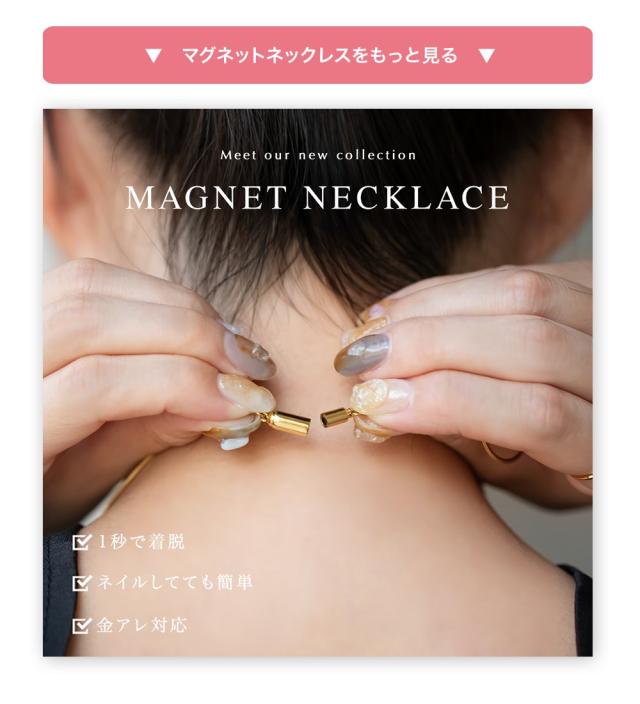- マグネットタイプのネックレスはつけやすくて便利ですし、この商品はチェーンタイプが選べるので、複数買いもおすすめです。