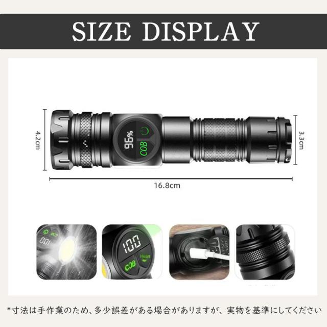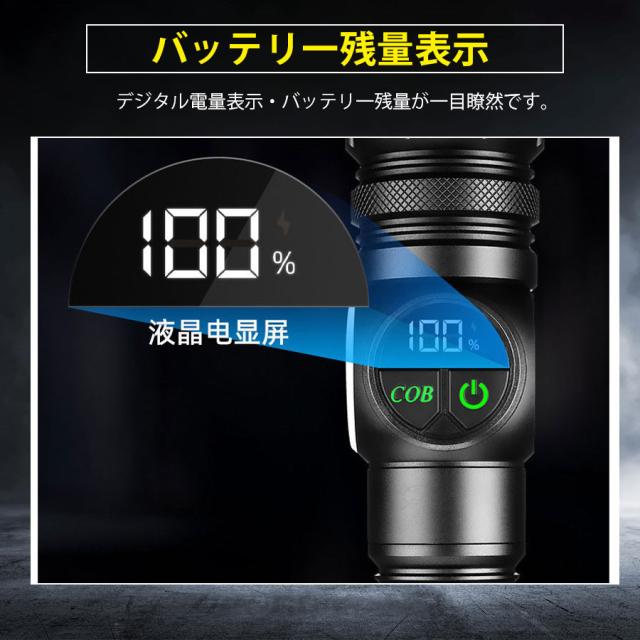 懐中電灯 LEDライト 照明 高輝度 USB充電式 小型 電池残量表示 COB アルミ合金製 ハンディライト ズーム機能 防水 軽