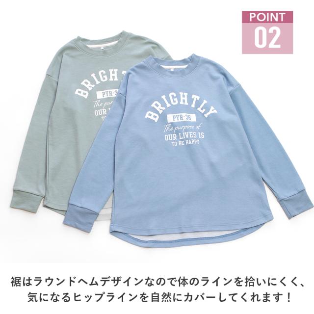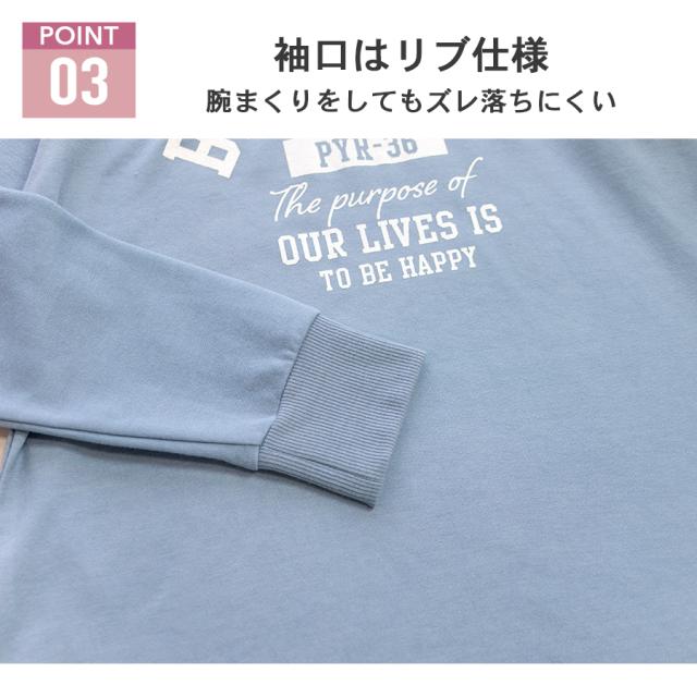 ●トップス仕様:長袖/ラウンドヘム/衿ぐりリブ/袖口リブ/プリント
