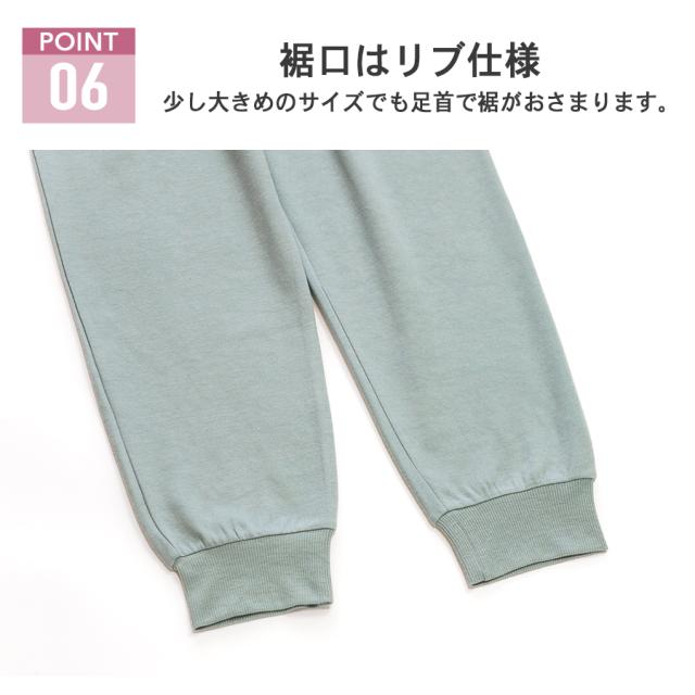 パンツの裾口はリブなので上にずりあがらず少しサイズが大きめだったとしても足首で裾がおさまります。