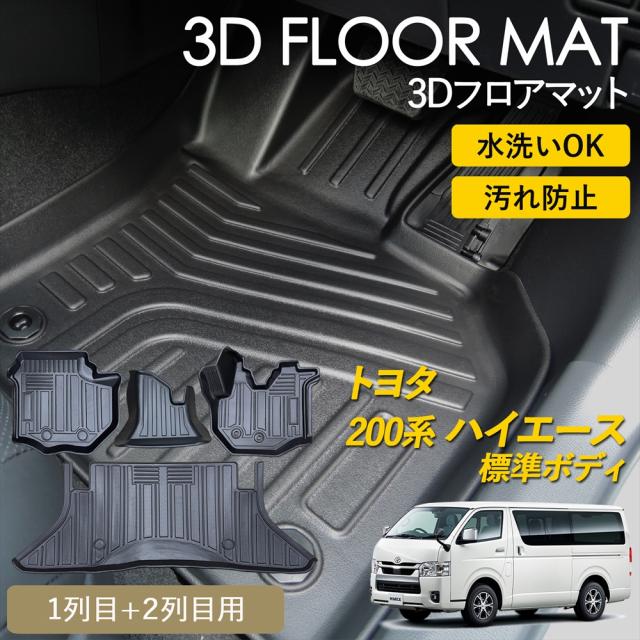 200系 ハイエース 標準ボディ 3D フロアマット ラグ マット 3Dマット 運転席 助手席 1列目 2列目 セット ピッタリフィット 汚れ防止 防水 防汚 お手入れ簡単 丸洗い 置くだけ 車種専用設計 立体 カーマット 前席 後席 TOYOTA トヨタ カー用品