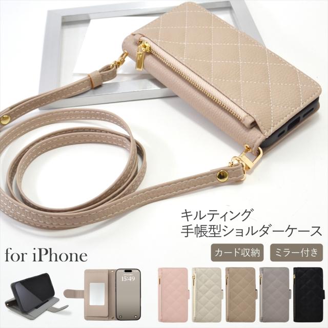iPhone17 air ケース iPhone17pro ProMax スマホケース 手帳型 ショルダー iPhone16 pro max 16plus 16e ファスナー ポケット コインケース キルティング キルト 鏡 ミラー付き カード収納 ミニマム くすみカラー スマホショルダー 斜めがけ スタンド機能