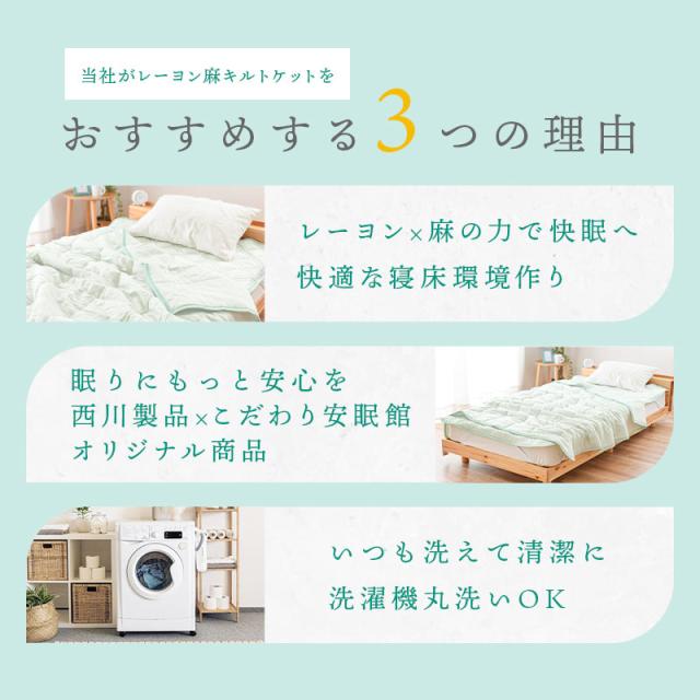 [keyword|ソフトな肌触り 麻とレーヨンで爽やか 西川 肌掛けふとん 夏用 シングル リネン 麻とレーヨンいいとこ取り 夏掛け布団 肌掛け布団 レーヨン キルトケット 夏 春 秋 接触冷感 洗える 洗濯機 冷房対策 当社限定品 掛け布団]