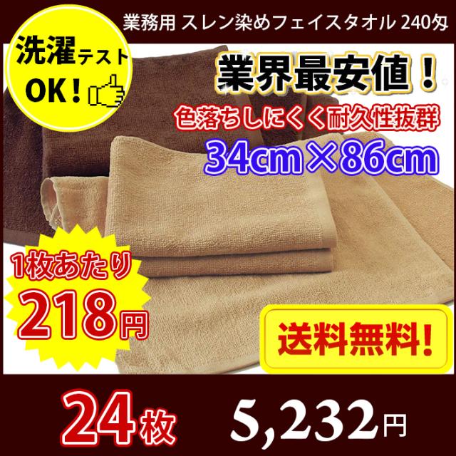 【送料無料】1枚あたり218円 同色24枚セット スレン染め フェイスタオル 240匁 モカ ダークブラウン 34cm×86cm / 業務用 長持ちタオル