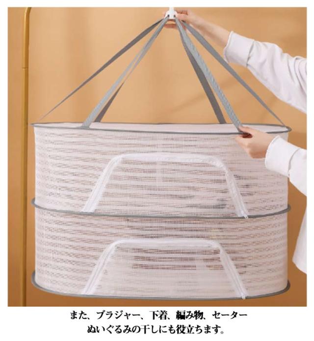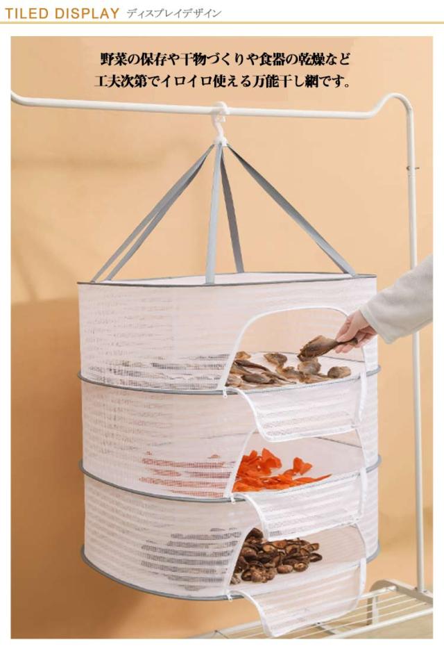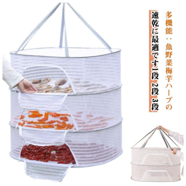 | 【2段 3段】 【多機能】:魚、野菜、梅、芋、 ハープの速乾に最適です。 野菜の保存や干物づくりや食器の乾燥など、工夫次第でイロイロ使える万能干し網です。 また、ブラジャー、下着、編み物、セーター、ぬいぐるみの干しにも役立ちます。 特におしゃれ着やぬいぐるみ、枕などを平干しすることで、型崩れを防止します。 虫の侵入も防ぎ、安心してご使用いただけます。 強風時にも安心して使用できる防風カバーが付いています。 折りたたむとコンパクトになり、旅行や出張の際にも便利です。通気性のあるメッシュ構造で、洗濯物が速乾します。 ファスナーが広く開くから出し入れが簡単。 | |