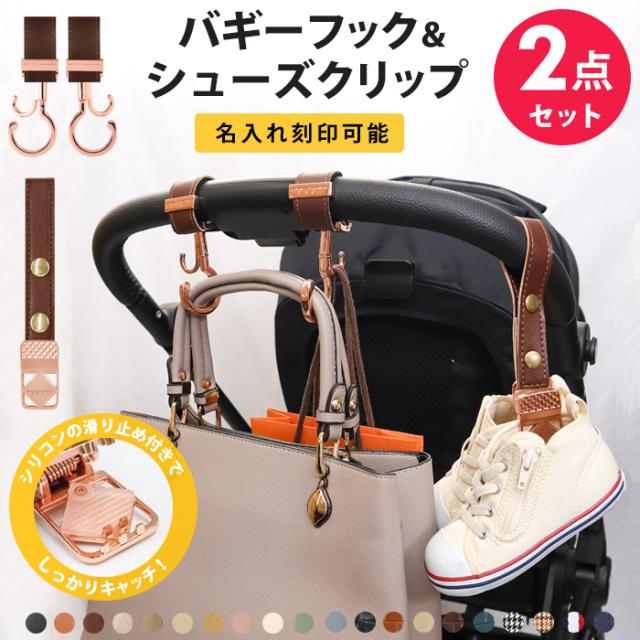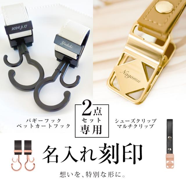【単品購入不可】2点セット用 名入れ刻印 ベビーカーフック シューズクリップ マルチクリップ 出産祝い ギフト ベビーカー フック 誕生日 プレゼント ペットカート 犬 猫 赤ちゃん 名前入り おしゃれ オリジナル ネームプレート バギーフック