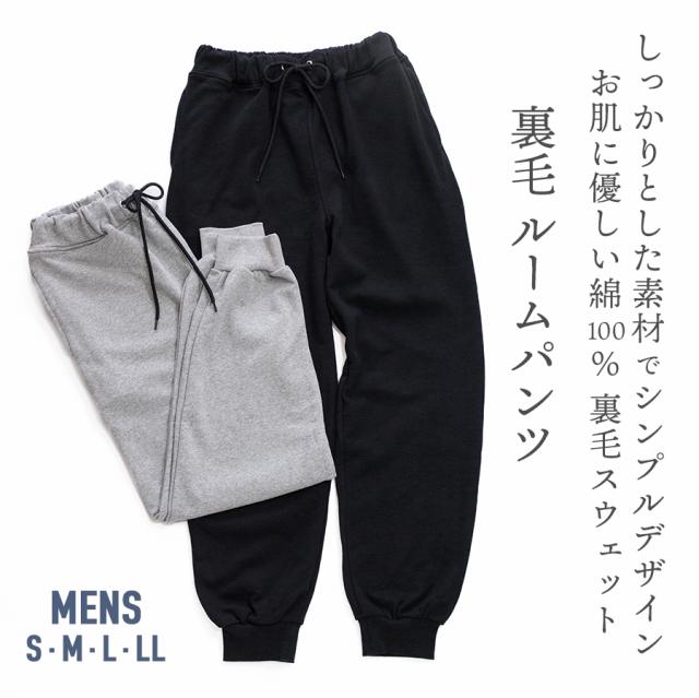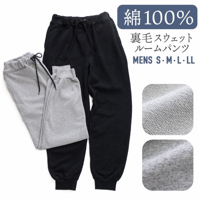 ルームパンツ メンズ パジャマ 綿100% パンツ リブ付き 秋 冬 重厚感のある裏毛 スウェット ブラック グレー S M L LL ワンマイルウェア ユニセックス 親子 おそろい リンクコーデ 敬老の日
