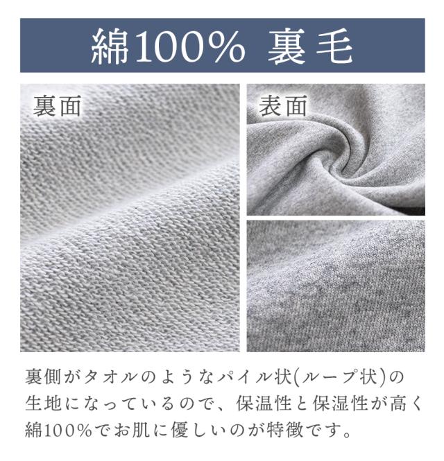 裏側がタオルのようなパイル状(ループ状)の生地になっているので、保温性と保湿性が高く、お肌に優しいのが特徴です。