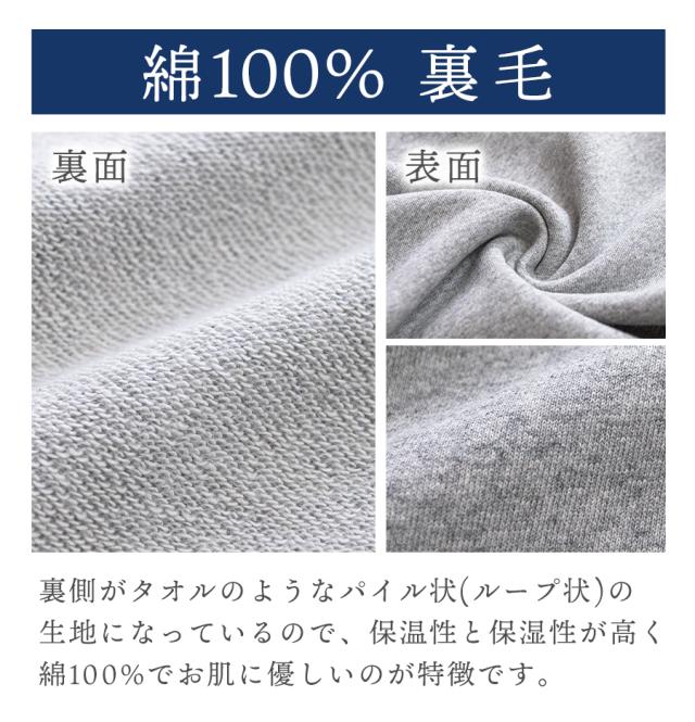 裏側がタオルのようなパイル状(ループ状)の生地になっているので、保温性と保湿性が高く、お肌に優しいのが特徴です。