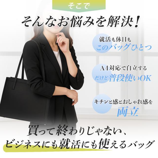 就職活動・通勤・通学・プライベートまで幅広く活躍する、万能レディーストートバッグです。