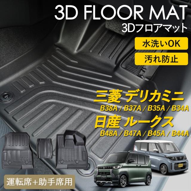 デリカミニ 30系 ルークス 40系 3D フロアマット ラグ マット 3Dマット 運転席 助手席 防水 防汚 汚れ防止 車種専用設計 ピッタリフィット お手入れ簡単 丸洗い 置くだけ 立体 カーマット 三菱 日産 ニッサン カー用品 B34A B35A B37A B38A B44A B45A B47A B48A